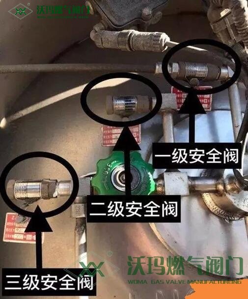 以下圖新款氣瓶為例,共三級(個)安全閥,設定自動開啟壓力分別為1.90、2.4、2.85Mpa。也就是如果氣瓶故障時,先升溫后升壓直至爆炸,需要三個安全閥全部同時失效,而這個幾率,約等于零!